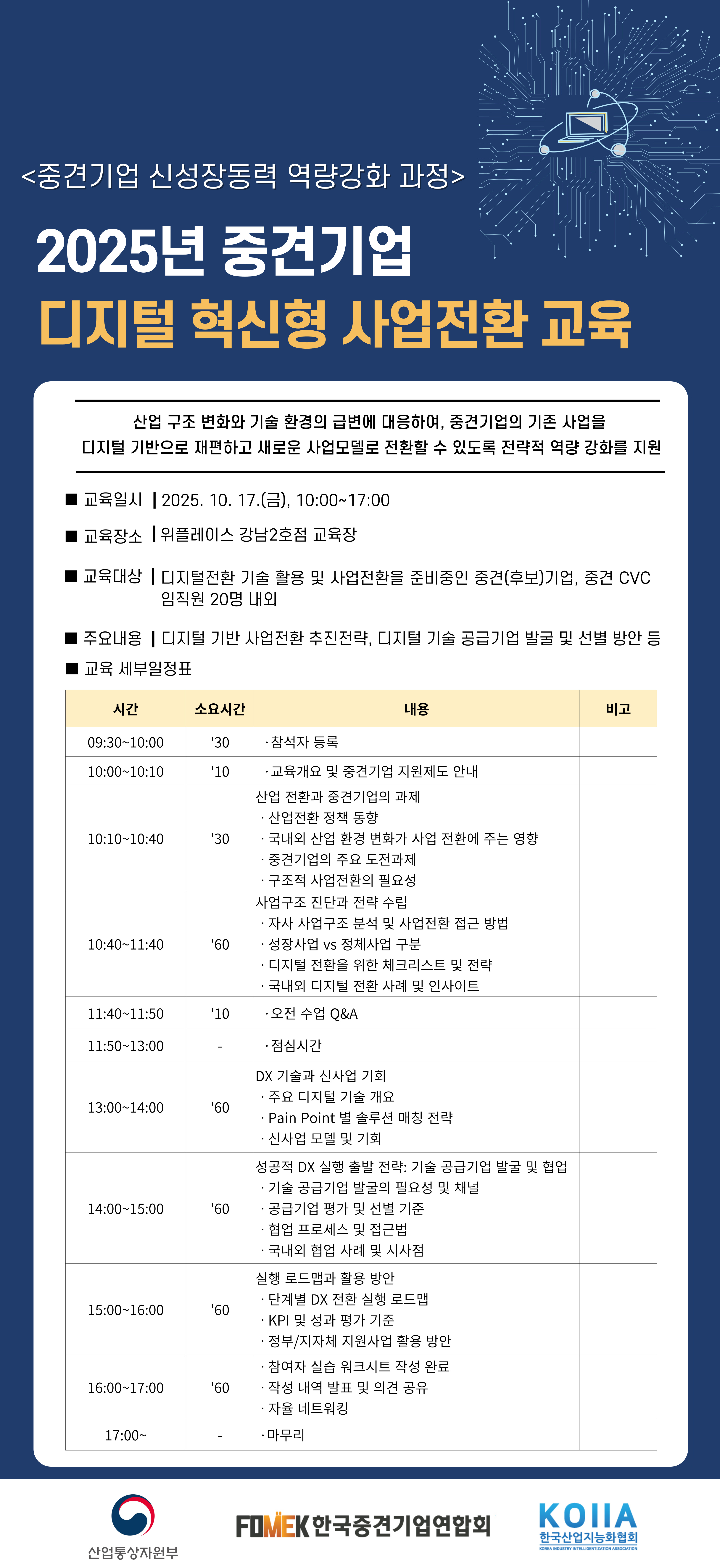 2025년 중견기업 디지털 혁신형 사업전환 교육